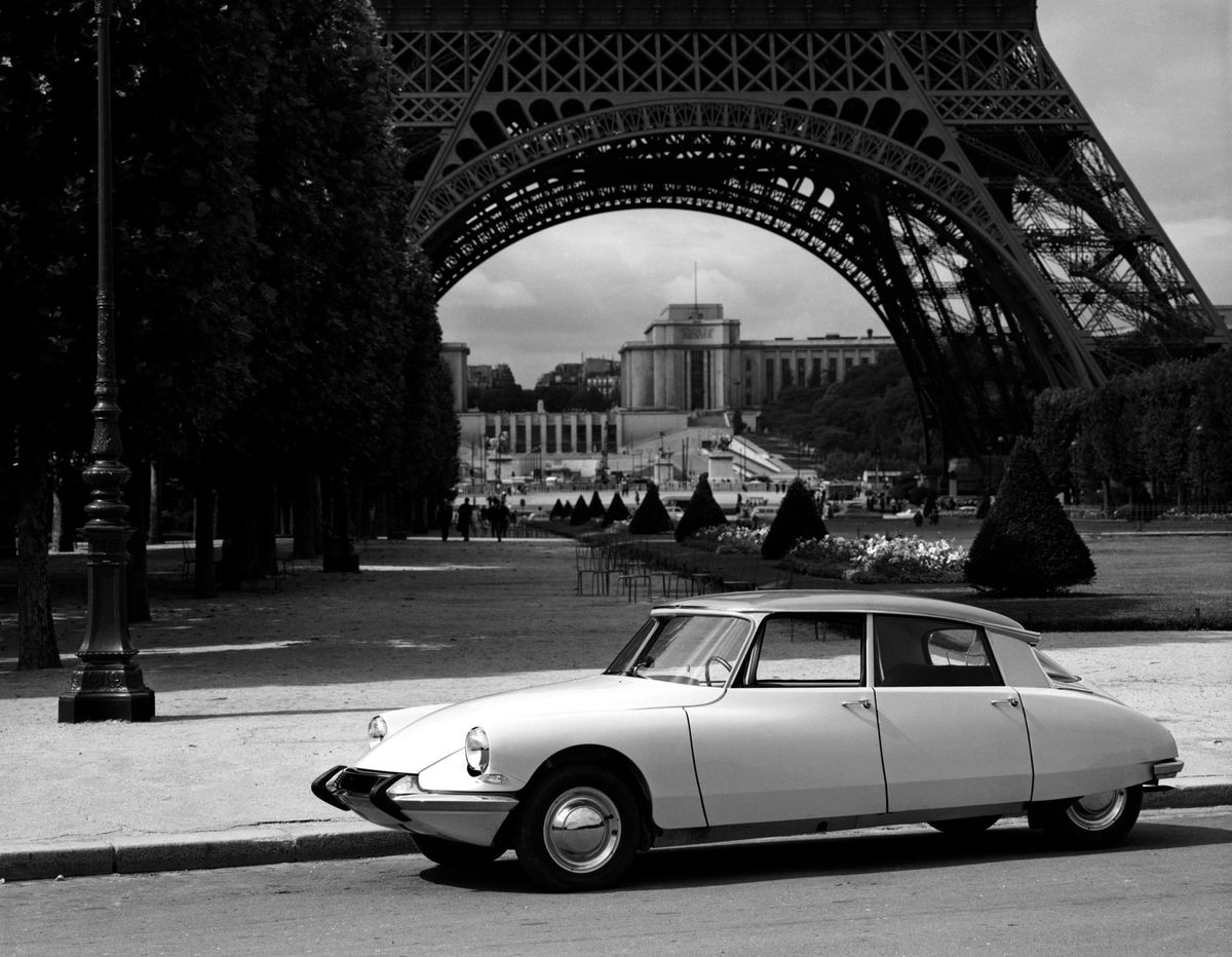La Citroën DS è una vettura accuratamente studiata anche dal punto di vista dell’aerodinamica: vista dall’alto, la sua forma è quella della goccia d’acqua, più larga davanti, che si restinge progressivamente scivolando verso la coda. La carenatura è integrale e riveste la parte inferiore della vettura, così come le ruote posteriori, comprese nei parafanghi.